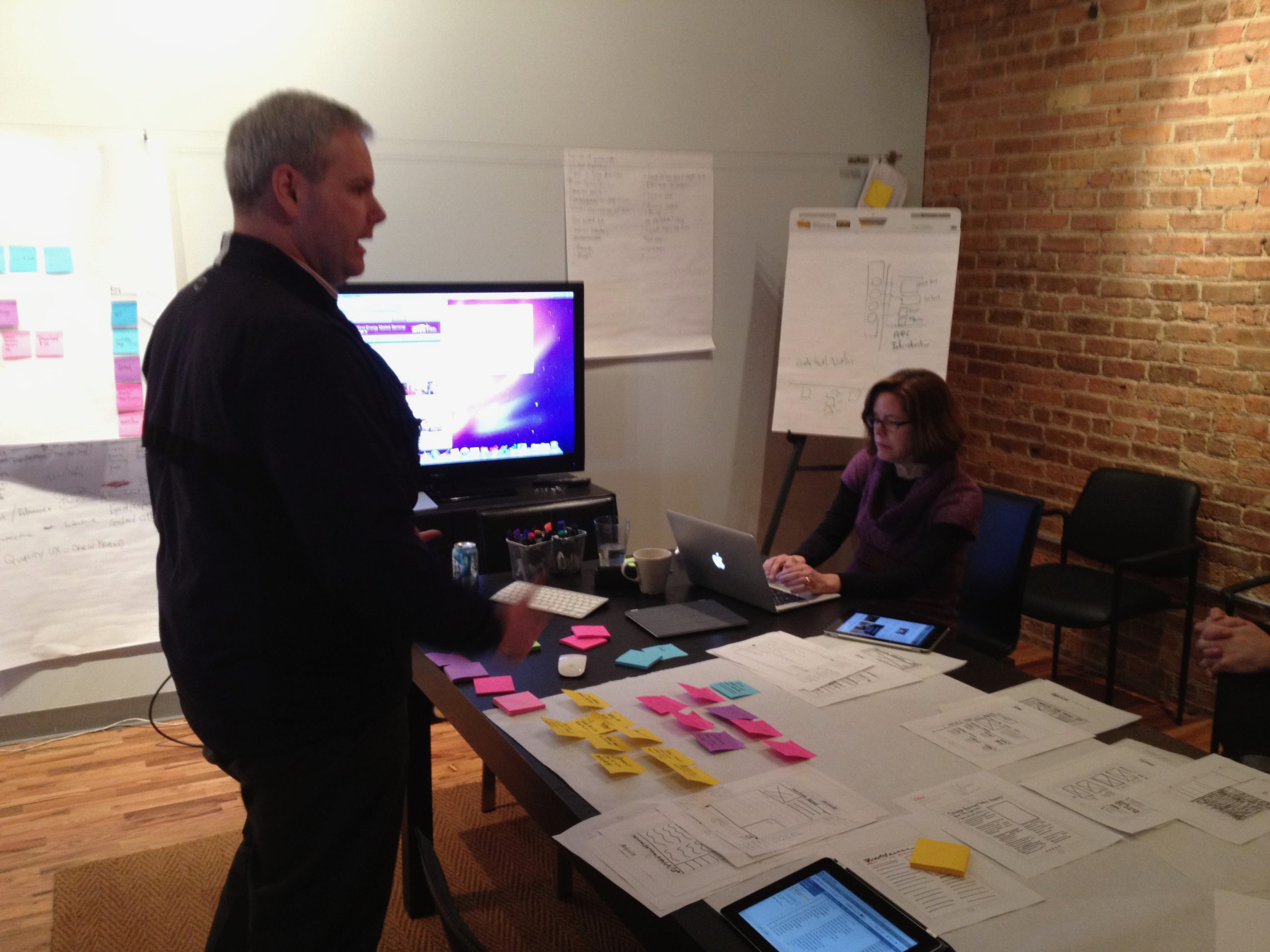 Whiteboards are great, but butcher paper is even better. A large sheet was rolled out and lots of ideas were captured and expanded in realtime.